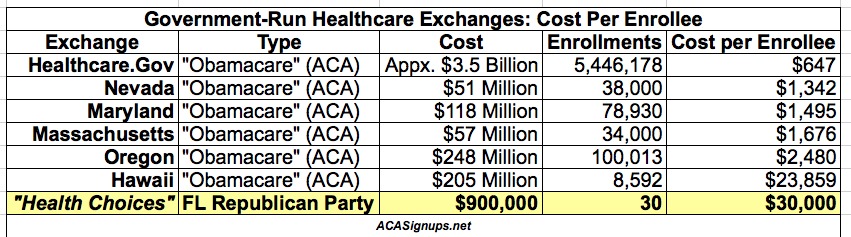 And the Republican-backed "health exchange" in Florida? Well, it cost FL taxpayers $900,000 to build.