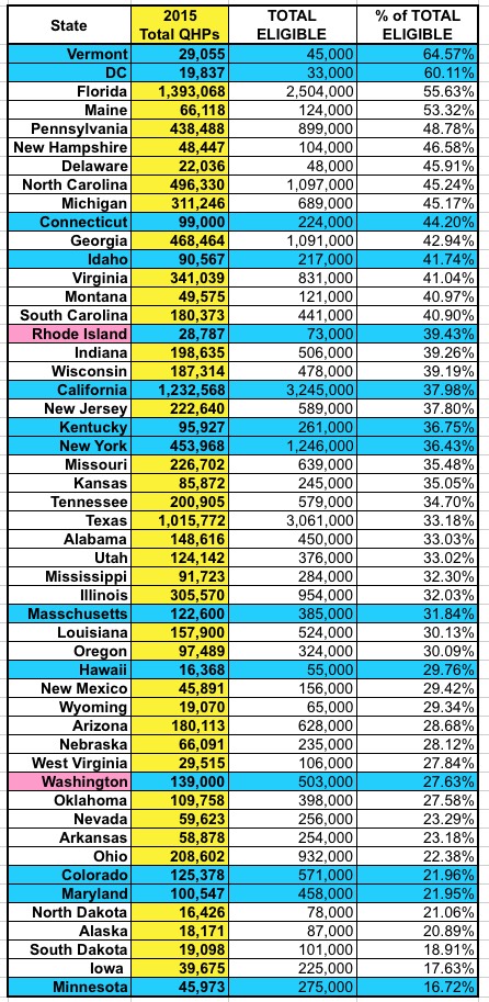 3) For Rhode Island and Washington, I'm using a different number than the other states; RI is the QHP selections, but after past-due non-paid ones have been purged from the total; in WA, they're only reporting the paid QHPs at all, so I don't know what the total selections are to begin with.
