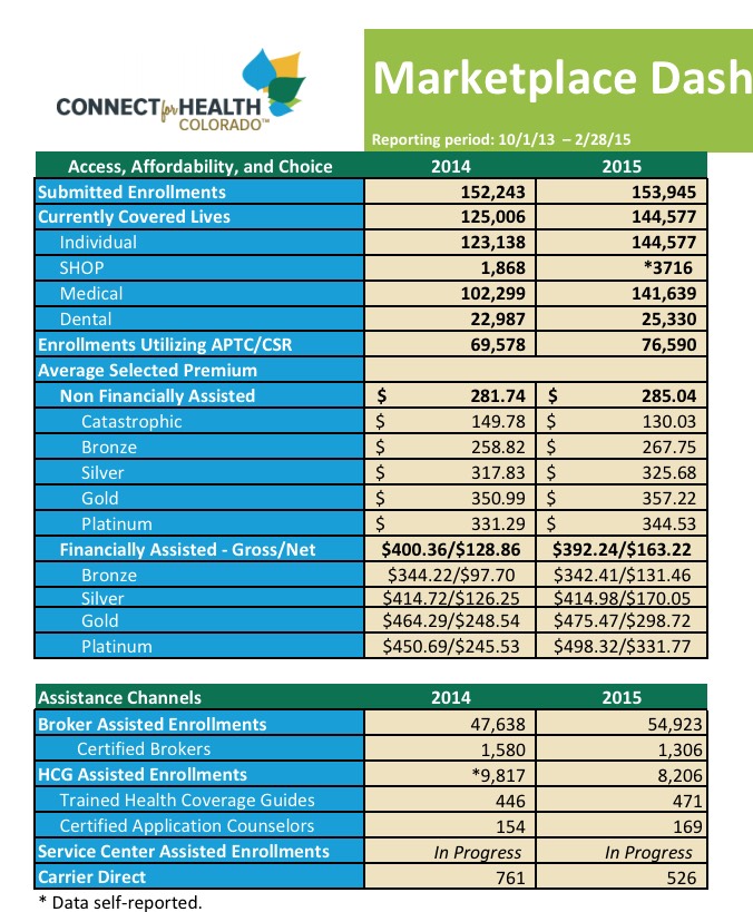 The Colorado ACA exchange has just released their latest official enrollment report, and while it's chock full of useful data, it's also bit hard to read (physically...it's a low-res version, will swap it out with a higher-res PDF once they post it), and the numbers also require a bit of parsing...and are a bit confusing.