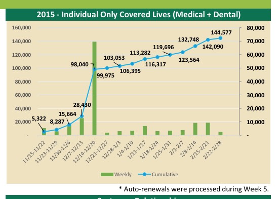 the grand total of "submitted enrollments" is just shy of 154,000. However, that appears to include 3,716 SHOP enrollees (the precise SHOP number is a bit fuzzy due to the footnote regarding this being "currently covered lives, regardless of date of enrollment").