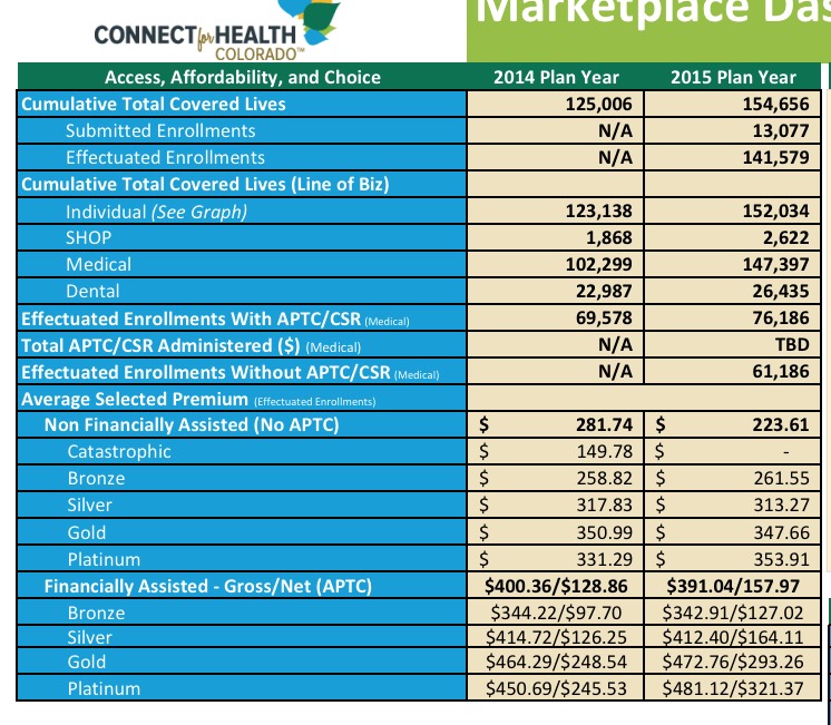 Colorado's official QHP selection total as of 2/21/15 was 140,327, and as of the end of April, it was up to 146,506...of which 129,055 were actually effectuated as of 4/30.