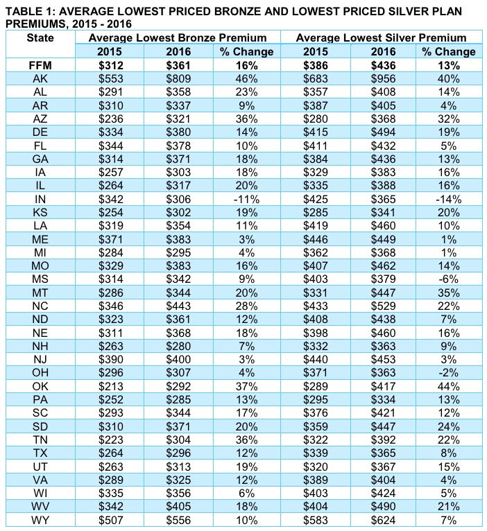 ...As shown in Figure 1, the average lowest silver plan in states with a federal exchange increased by 13.0 percent from 2015 to 2016, compared to 3.2 percent from 2014 to 2015.