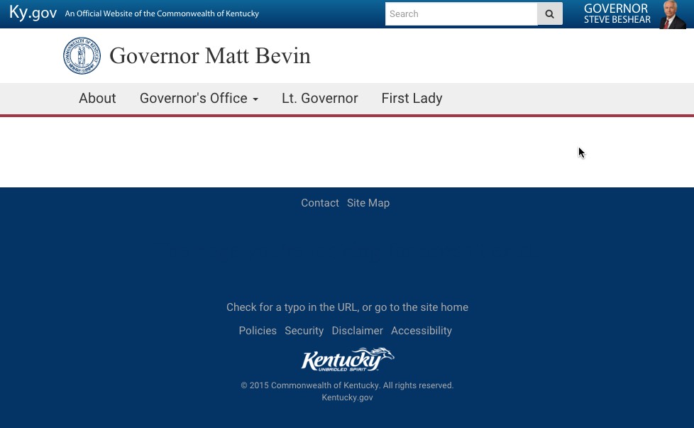 Amusingly, BeShear's name and image are still in the upper-right corner, but other than that there's nothing funny about it.