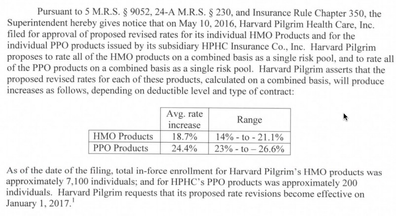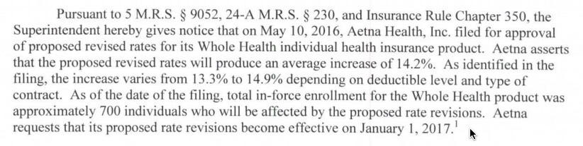 Just last week I ran the rate filing numbers for Maine and came up with an overall weighted 20.6% average hike request. Today I've learned three things: