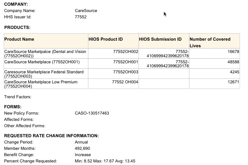 Here's some relatively good news! Ohio's 2017 requested rate filings have finally been published, and considering that some other states are looking at weighted average requested increases of 30%, 40% or even as high as 56%, Ohio's 13.1% average is actually refreshingly low by 2017 standards.