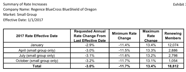 Yesterday (thanks to commenter farmbellpsu for the tip), the Oregon Dept. of Insurance announced preliminary approved rates for 2017: