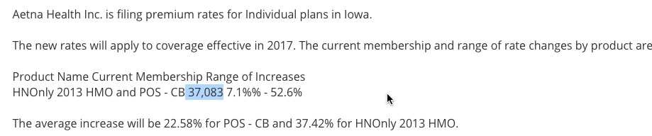 And finally, Wellmark's filing, which claims that their 38% rate hike will only impact around 7,800 current enrollees...as opposed to the 30,000 noted in the article: