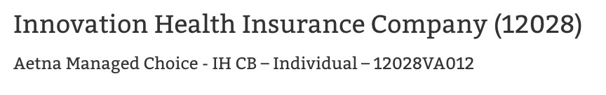 Shortly after that, however, Aetna announced that they're dropping out of the Virginia ACA exchange. According to Dan Mangan of CNBC, they "will not sell Obamacare plans in Virginia" which suggests that they're dropping off the entire individual market in VA, both on and off exchange. The best estimate I have of how many indy market enrollees Aetna has in VA is from last year's filing, when they had around 61,000 effectuated off-exchange enrollees. I'm assuming that number is somewhat higher today, since it would include on-exchange enrollees as well, but that's the best I can do for now. In addition, it appears that, as M E notes in the comments, "Innovation Health" is apparently owned by Aetna anyway, and in fact that's the only listing for 2017 over at RateReview.HealthCare.Gov: