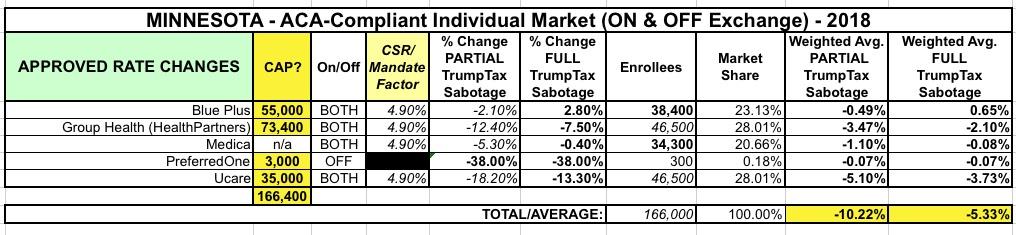 UPDATE: I've confirmed with the state Dept. of Commerce that all approved rates assume NO CSR payments next year. I've also confirmed that the CSR load is being applied to on-exchange Silver plans only, meaning Minnesota is apparently going the full "Silver Switcharoo" route. I've updated the table below accordingly.