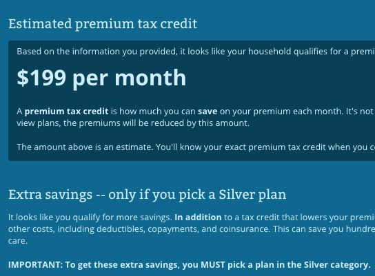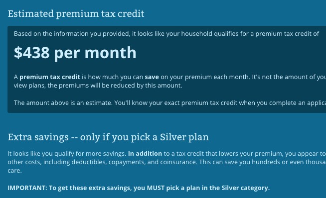 OK, now let's plug this info into HealthCare.Gov and see what we get.