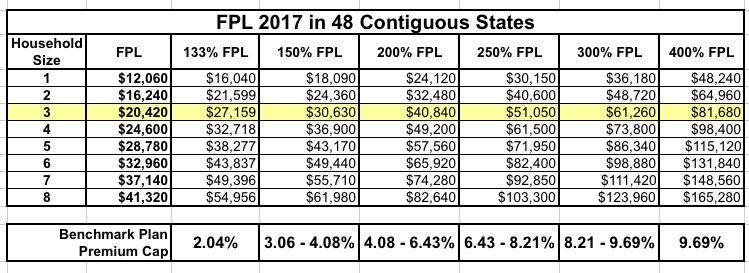 First of all, here's the 2017 Advance Premium Tax Credit (APTC) formula table: