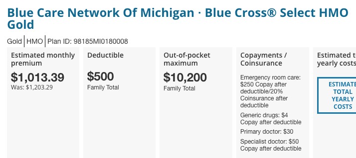 ...while the BCN Gold plan costs the full $1,203/month (again, with only a $500 deductible):