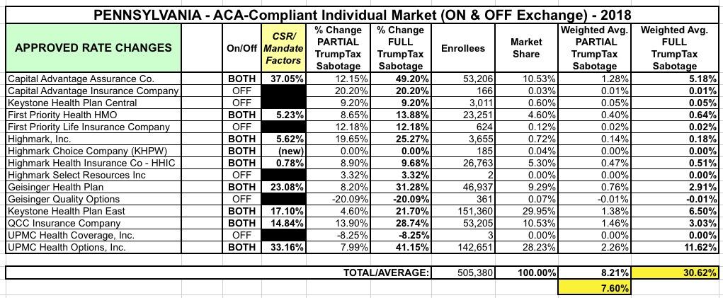 Pennsylvania: 75% of next year's rate hikes due specifically to Trump CSR sabotage
