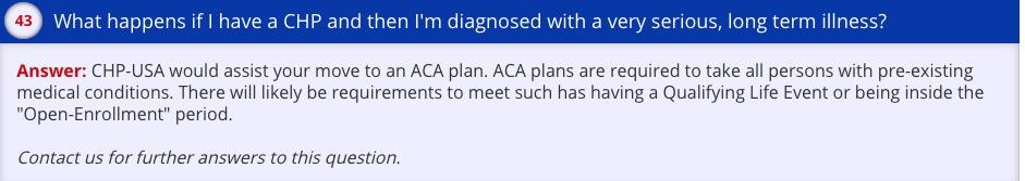 Customer: HomePort Healthcare says they move you to an ACA plan if you have a catastrophe because those can't deny you for pre-existing conditions