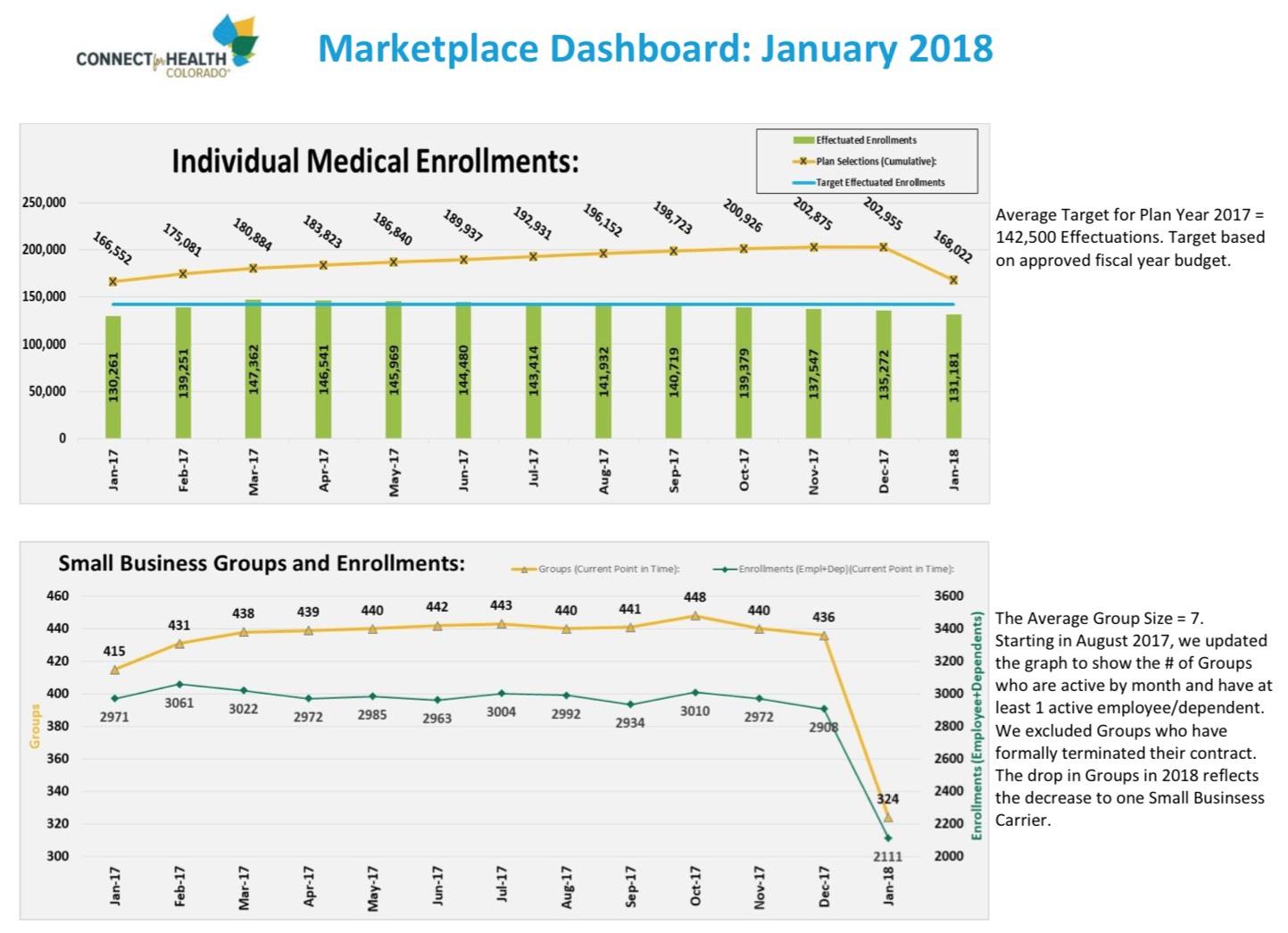 Not sure when this was posted, but the trendline is interesting...according to the first chart, Colorado ended 2017 down only 16.3% from their total OE4 enrollment number (161,568 QHP selections).