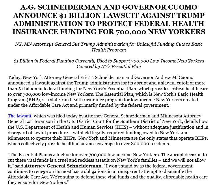 #BREAKING: We are suing the Trump administration for abruptly and illegally cutting off more than $1B in funding for New York’s Essential Plan—a lifeline for over 700,000 low-income NYers.
