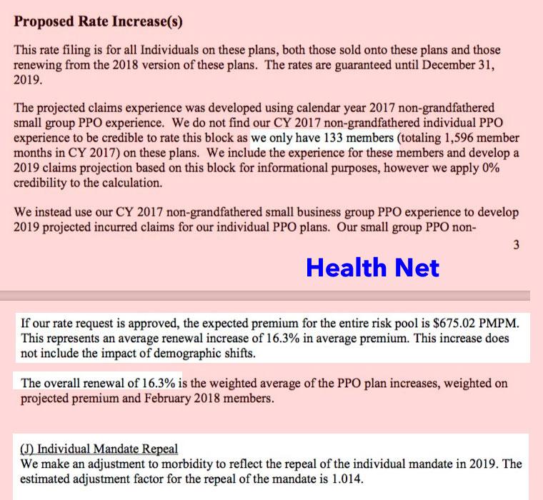 It's worth noting that a couple of the carriers are assuming the mandate penalty repeal will only cause a minor worsening of their risk pool...but others are pretty sure it's gonna make things "significantly" worse. It's all over the map, really.