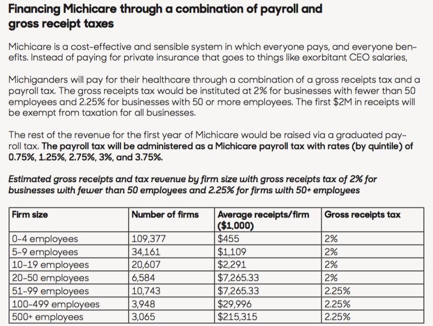 I have to turn from the employer tax to the payroll tax for a moment, however. Here's the actual payroll tax chart from El-Sayed's campaign: