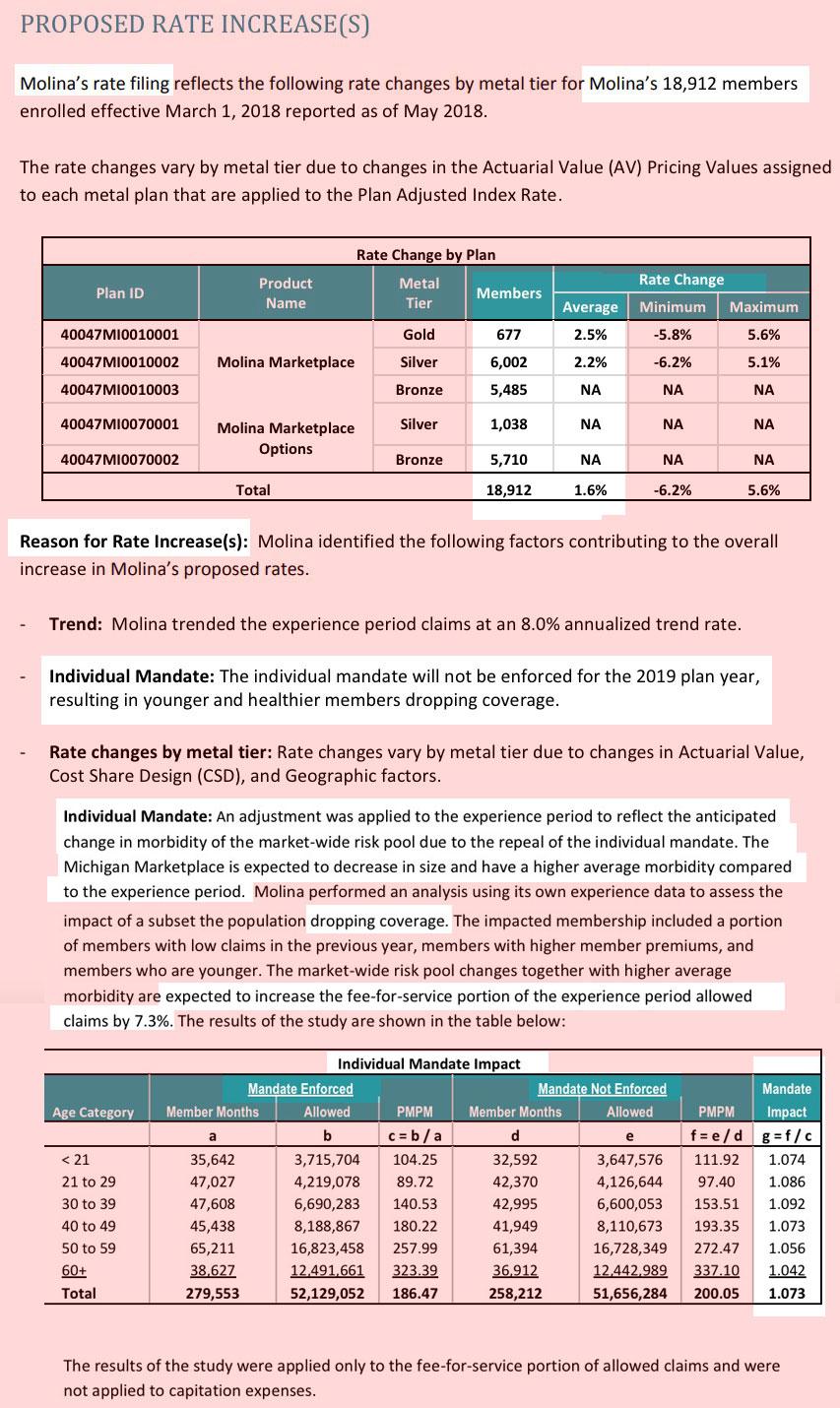 One thing I find very interesting is that Blue Cross, Blue Care Network and Meridian Health Plan, which comprise around 77% of the total individual market, made a point of mentioning the CSR load factor due to last year's sabotage efforts by Donald Trump. In summary:
