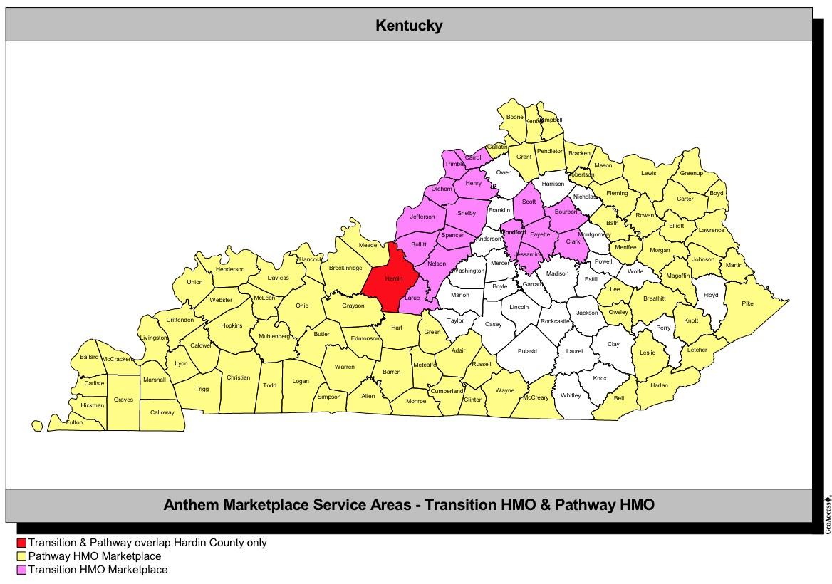 The KY DOI provides a map of which counties will be covered by which carrier next year: