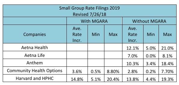 IMPORTANT: While the the actuarial analysis projects a 9% average premium drop thanks to the MGARA program, the carriers themselves have already chimed in and say that it will only lower their 2019 rates by around 3.4 percentage points. Until I hear otherwise from the carriers or the state insurance department, I'll assume a 3.4 point impact.