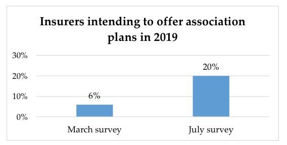 When asked if they intend to offer association health plans in 2019, nearly half (47 percent) said they did not. Twenty percent said they did intend to offer association plans in response to the Trump administration’s new rule, a significant increase since eHealth’s March 2018 survey, when only 6 percent of respondents said they intended to offer association plans.