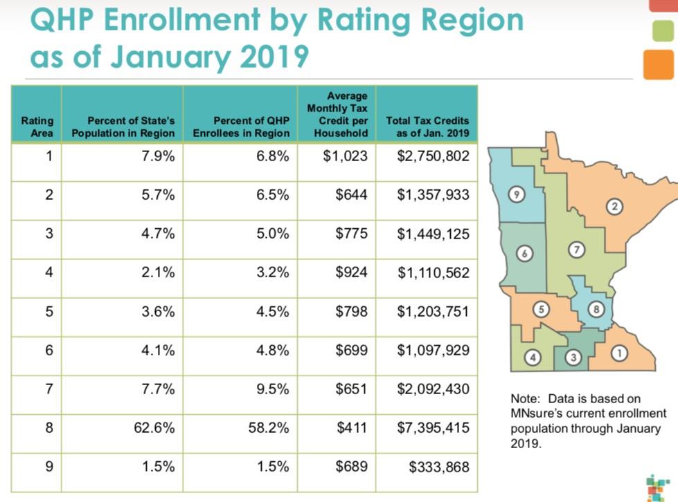 • It looks like MNsure's annual budget averages around $36 - $40 million per year, with between 50-60% of it coming from their 3.5% premium fee on exchange-based enrollments (I would think they'd spread the fee across off-exchange enrollments as well, as some other state exchanges do, for consistency's sake, which would reduce the amount of additional funding they need from the state Dept. of Human Services, but that's up to the state legislature, I presume).