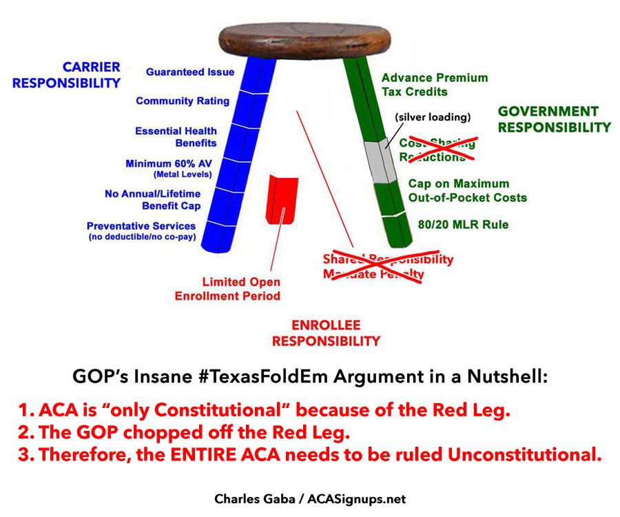 Here, yet again, is the entire argument being used by the Republican Party in the case: "Because we chose to sabotage part of the law, that means we get to wipe out the rest of the law." Seriously, that's their whole case.