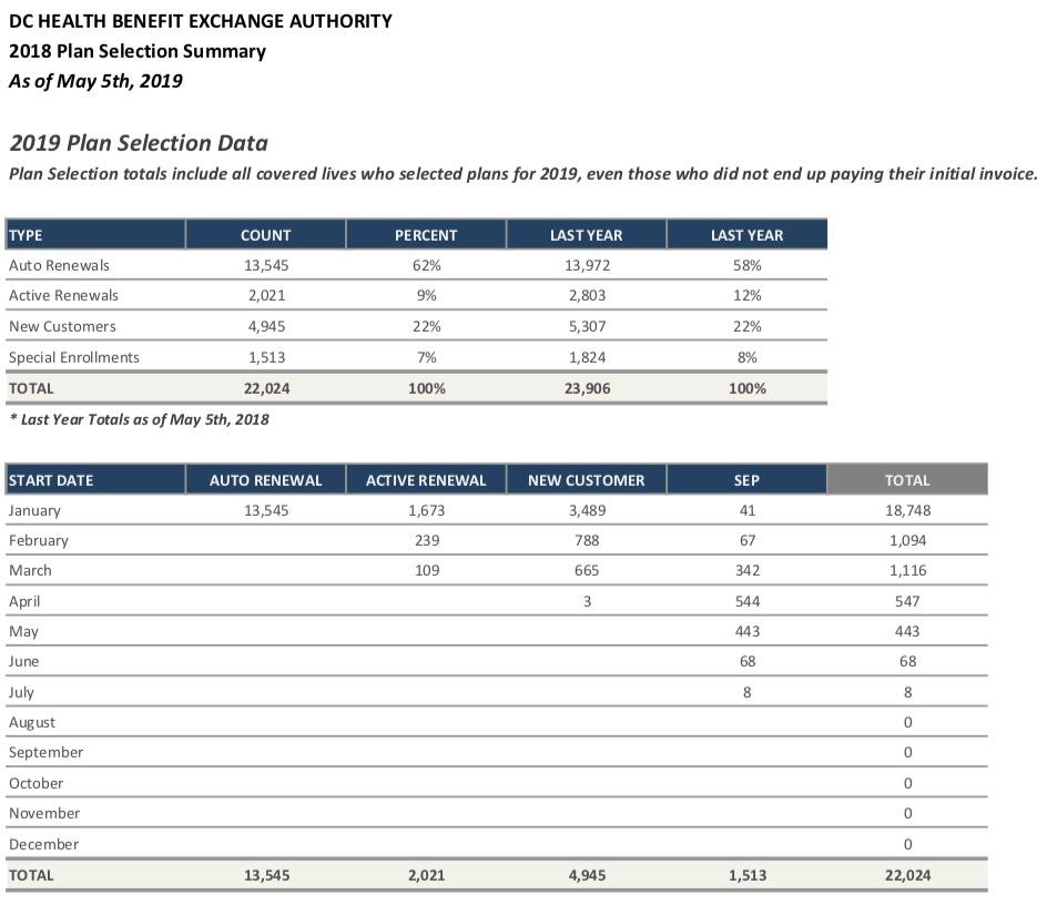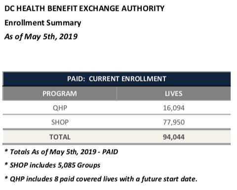 District of Columbia enrollment report: 89% retention rate thru May; 78K SHOP enrollees