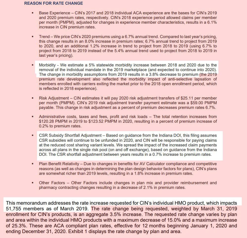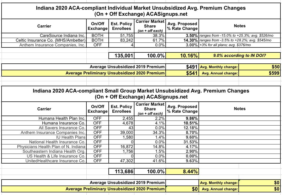 Indiana: PRELIMINARY 2020 ACA Exchange Premium Rate Changes: 9.0% increase (10.1%?)