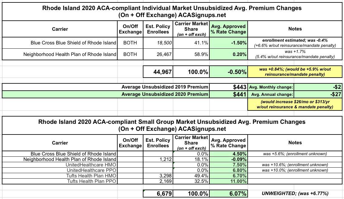 With my big MLR Rebate project finally out of the way, I have a backlog of other write-ups, including several approved 2020 premium rate changes. First up is tiny Rhode Island.