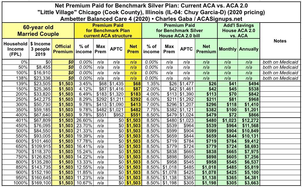 Under ACA 2.0, again, they'd pay no more than 8.5% in premiums, reducing their net premiums from $1,503/month down to as little as $480/month, a reduction of a whopping $1,023/month or over $12,200/year.