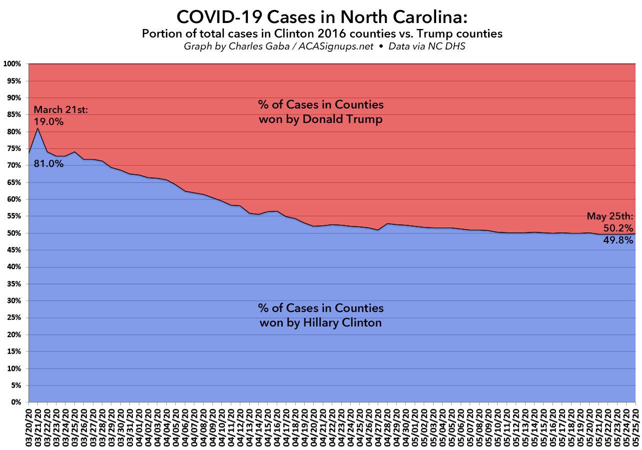 I took a look at North Carolina several weeks ago, but the data is obviously completely out of date by now, and it was only partial even then. Today I have confirmed case and fatality data for every county in North Carolina from March 20th through yesterday (May 25th)...and the state is very much in the news today because Donald Trump has apparently declared that the Republican National Convention, currently scheduled to happen in Charlotte, NC, must go on...and it must go on in person, with up to 20,000 Trump supporters crammed into an indoor convention center in the middle of a global pandemic.