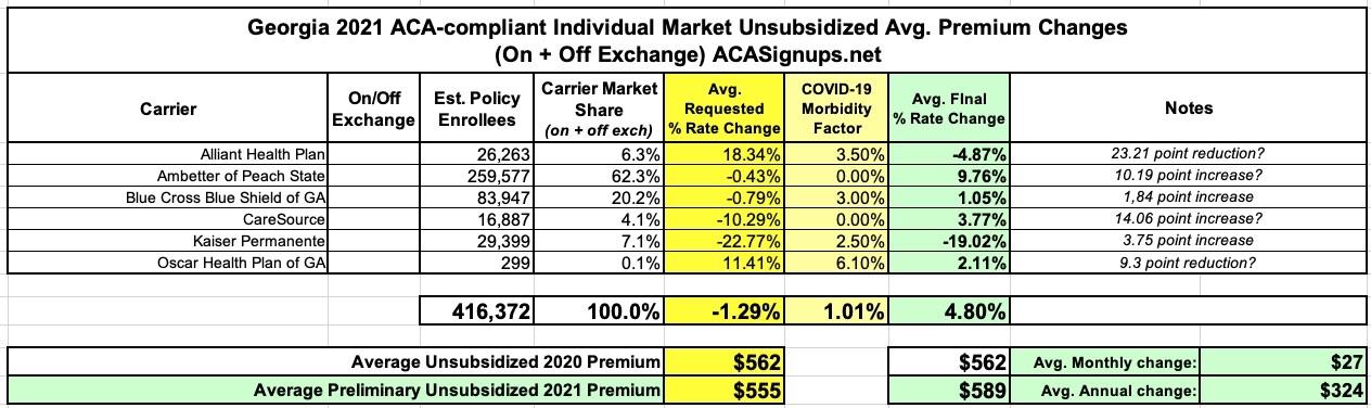 Georgia: Approved avg. 2021 #ACA premiums: +4.8% (was -1.3%)