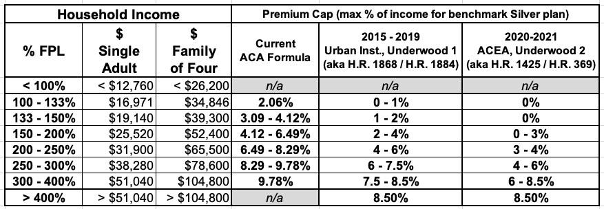 Their proposed table would have changed the maximum net premiums various households pay for an ACA benchmark Silver plan (the 2nd lowest-cost ACA plan available in their area) like so: