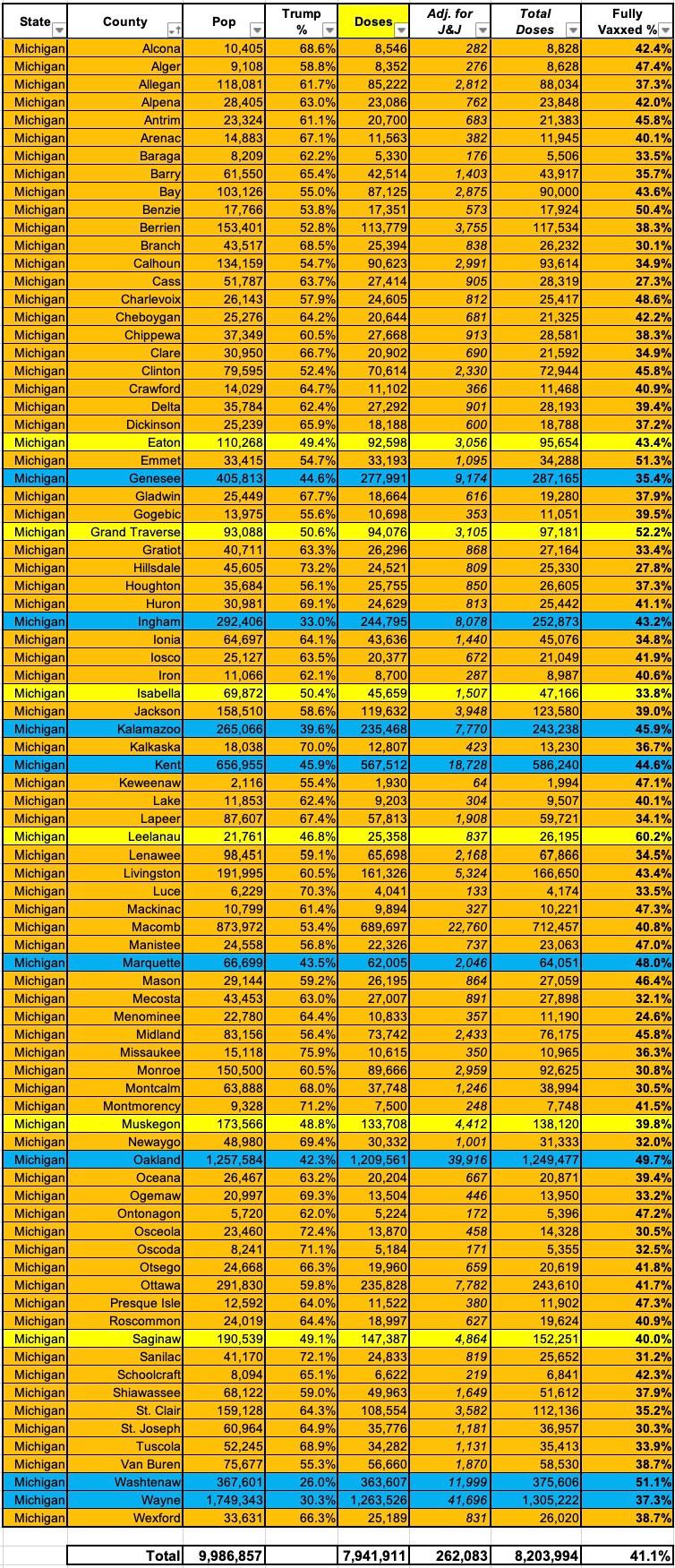 UPDATE: Here's where Michigan stands as of 5/21/21. I've also added the county-level spreadsheet as of today:
