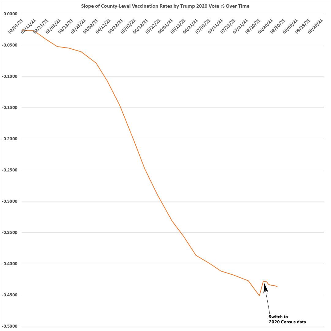 Weekly Update: U.S. #COVID19 vaccination levels by COUNTY & Partisan Lean