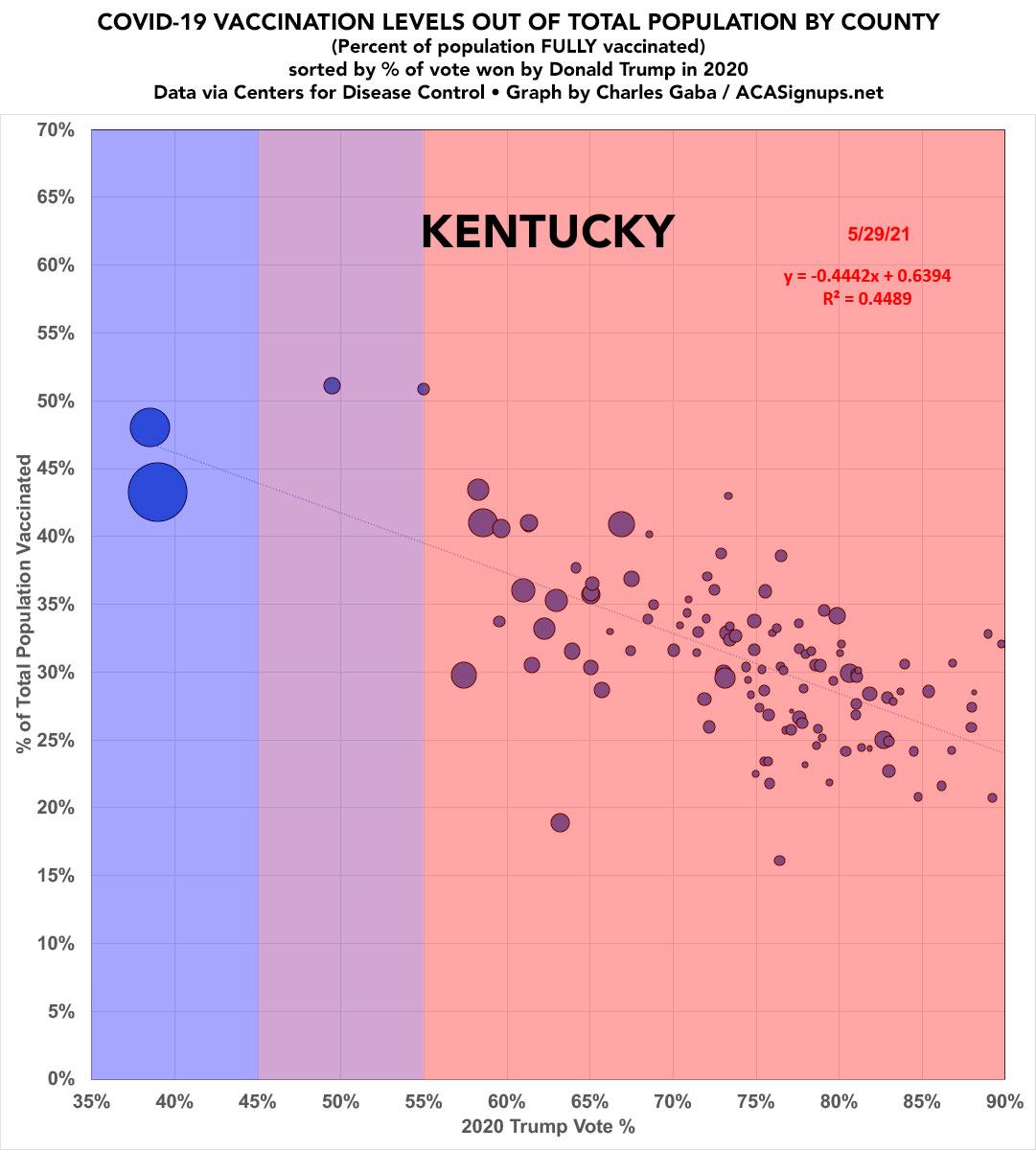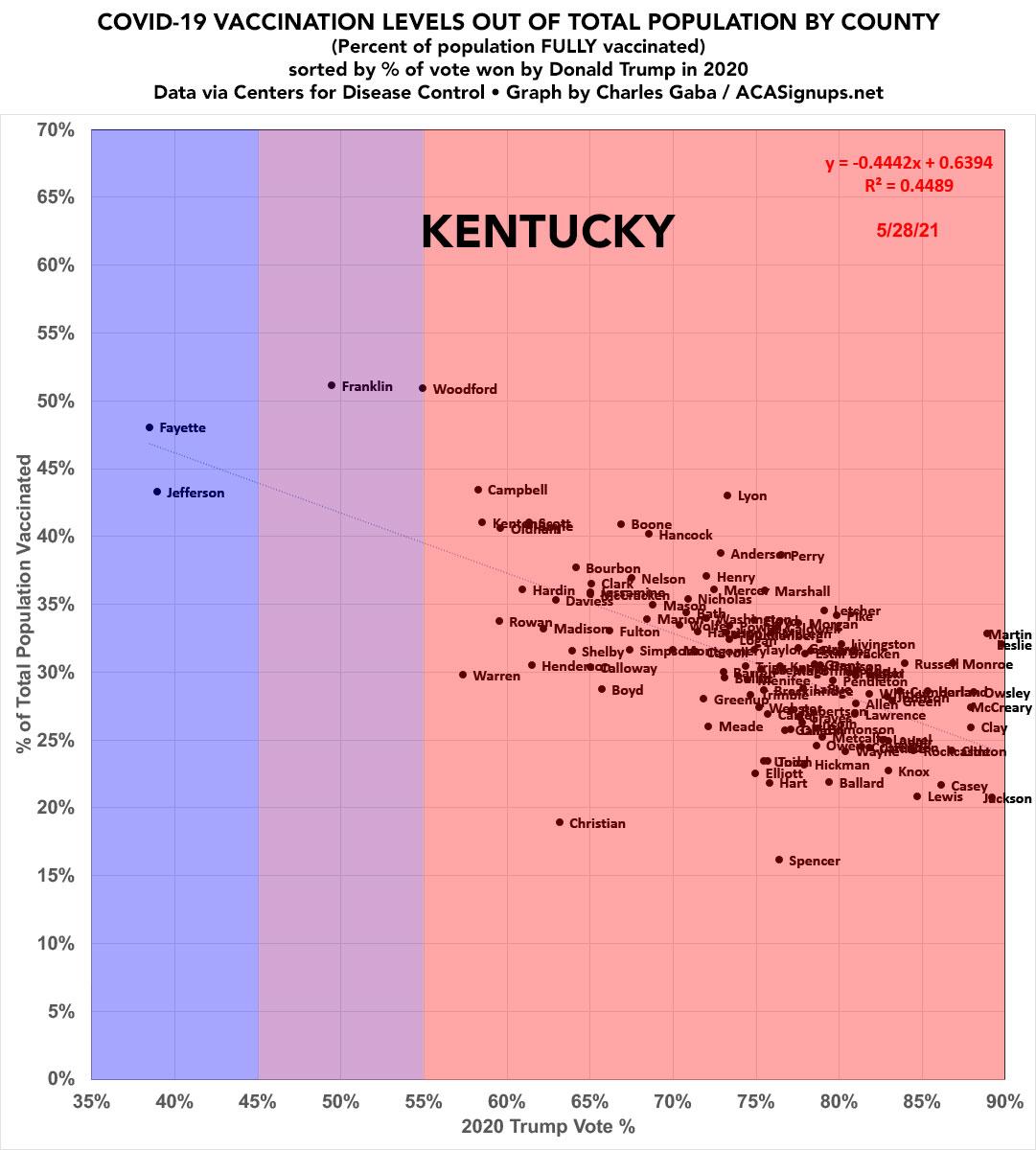 Kentucky: #COVID19 vaccination rates by county & partisan lean