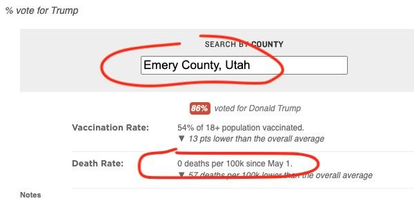 Well, on a hunch I decided to plug a couple of Utah counties in and sure enough, they both come back showing 0 deaths per 100K since May 1: