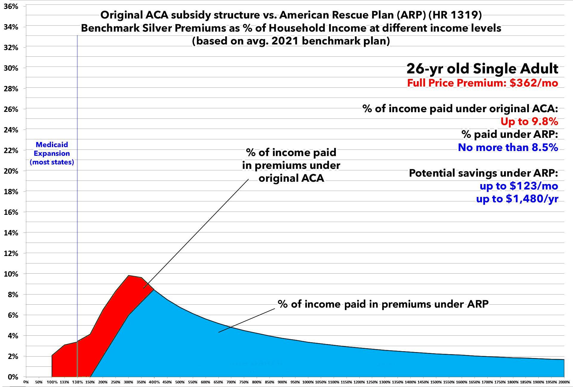 First of all, here's the final, official subsidy table under the ACA today vs. under the American Rescue Plan (ARP). This is the table which will be used at least for 2021 & 2022 (and yes, it's supposed to be retroactive to January 1st, 2021 for current ACA exchange enrollees):