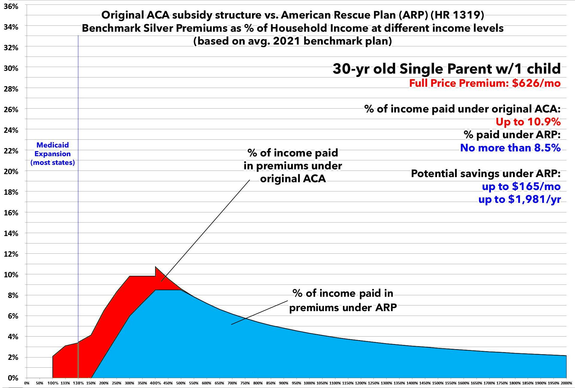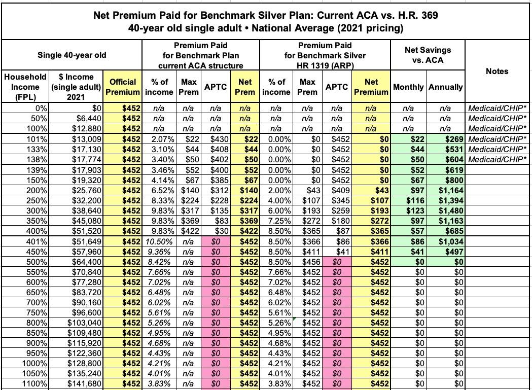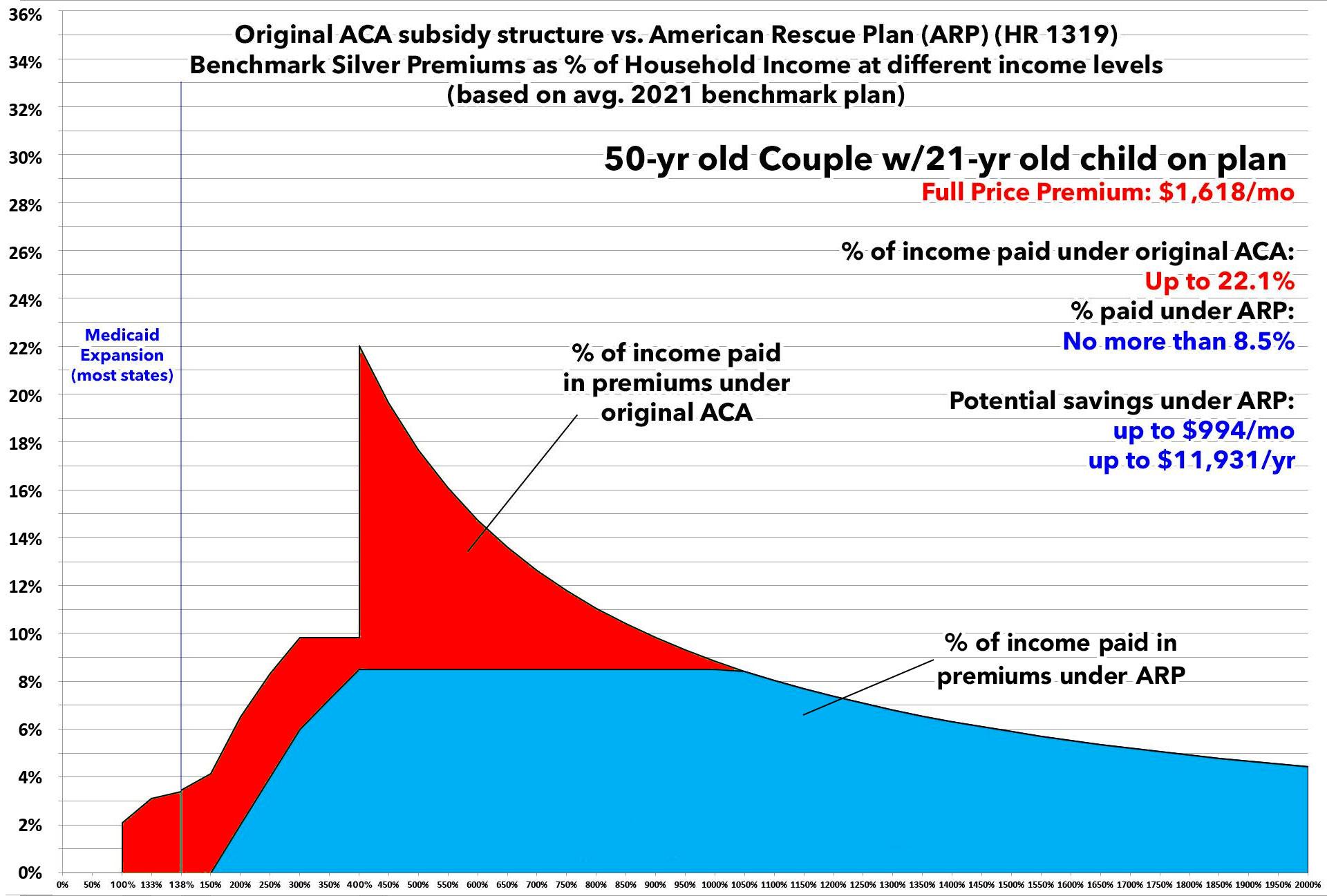 In this version I'm using the actual Advanced Premium Tax Credit (APTC) table under the American Rescue Plan, and I'm cutting out all references to the other two tables to avoid confusion.