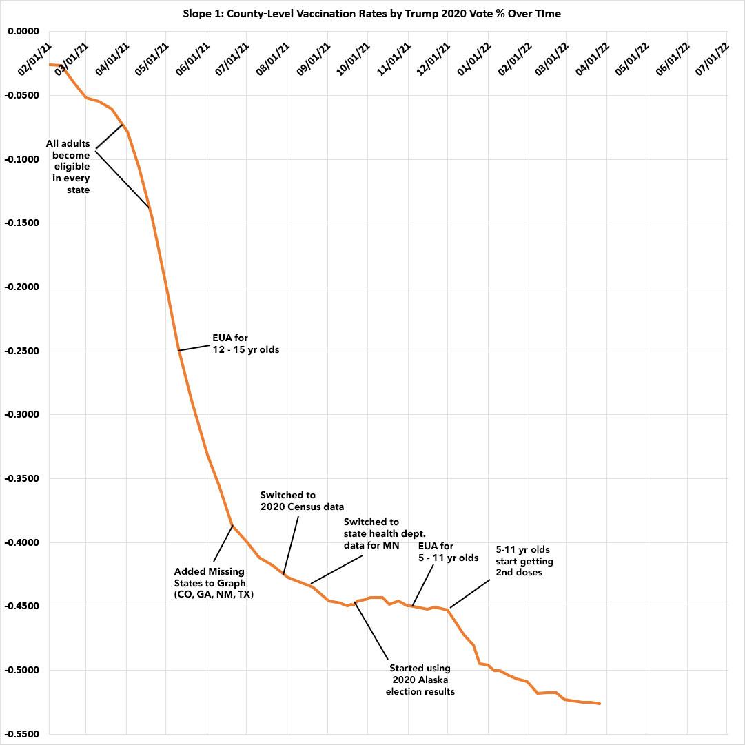 ...the slope angle has continued to increase, albeit at a slower rate than it did after the 5-11 yr old vaccination surge last December: