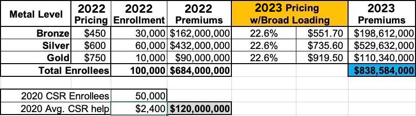 If they do it this way, premiums for all three plans would go up by 22.6%. This is known as Broad Loading: