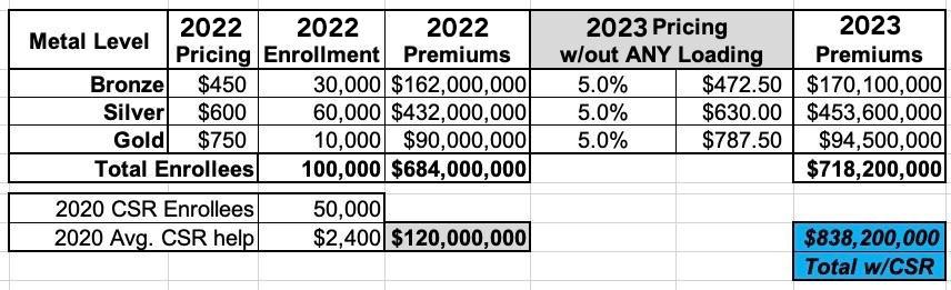 What happens if they load their projected CSR losses evenly onto the premiums instead?