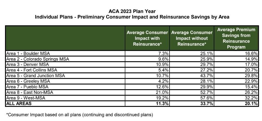 The initial review by the DOI of the insurance companies’ filings for 2023, indicate that the overall average consumer impact on premiums in the individual market will be an 11.3% increase over 2022 premiums. These are the health insurance plans available to individuals on Connect for Health Colorado, the state’s health exchange made possible by the Affordable Care Act (ACA).