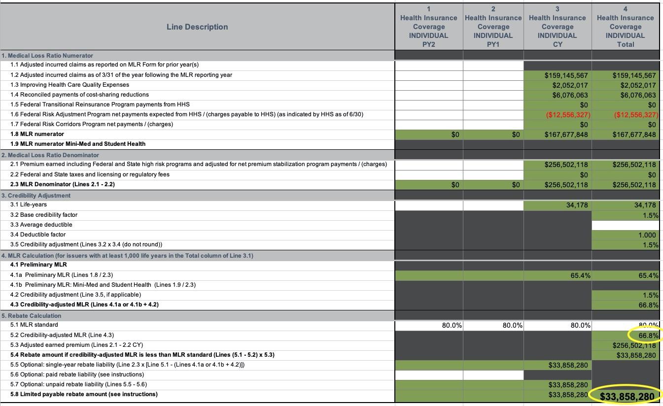Their MLR was way too high the first two years...in fact, they lost money in 2014 and probably in 2015 as well, since administrative overhead/etc. costs more than 5%. Things started to stabilize in 2016, and in 2017 they actually overshot the mark slightly. In 2018 they seriously overpriced, so they instituted a price freeze in 2019 to try and comply with the ACA's 80% MLR rule.