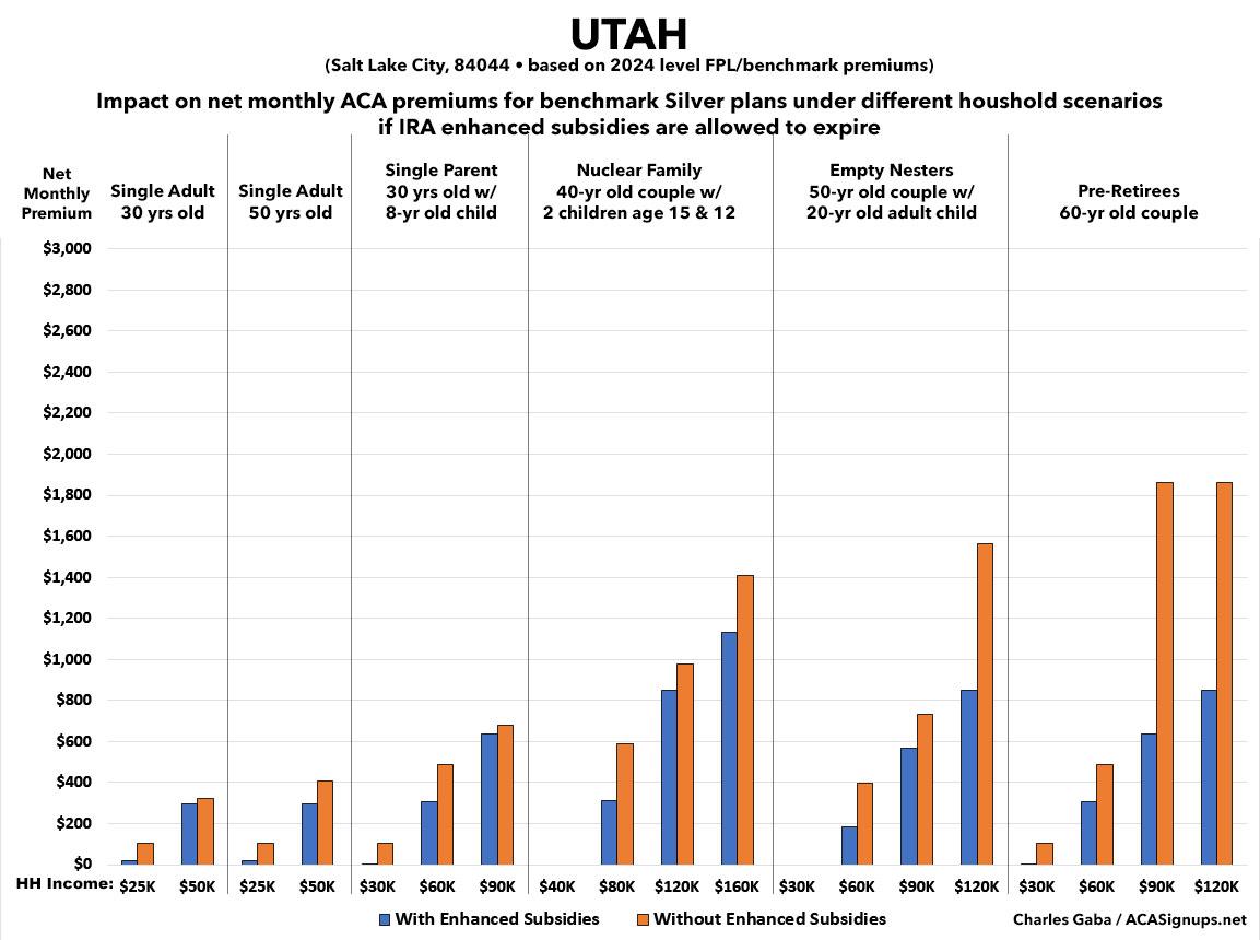 That's the macro level, however. As I did a couple of years ago when the subsidies were originally at risk of expiring in 2023, I decided to run the numbers myself to get an idea of just how much enrollees real-world health insurance premiums would go up in the event the ARPA/IRA subsidies are indeed allowed to expire at the end of next year.