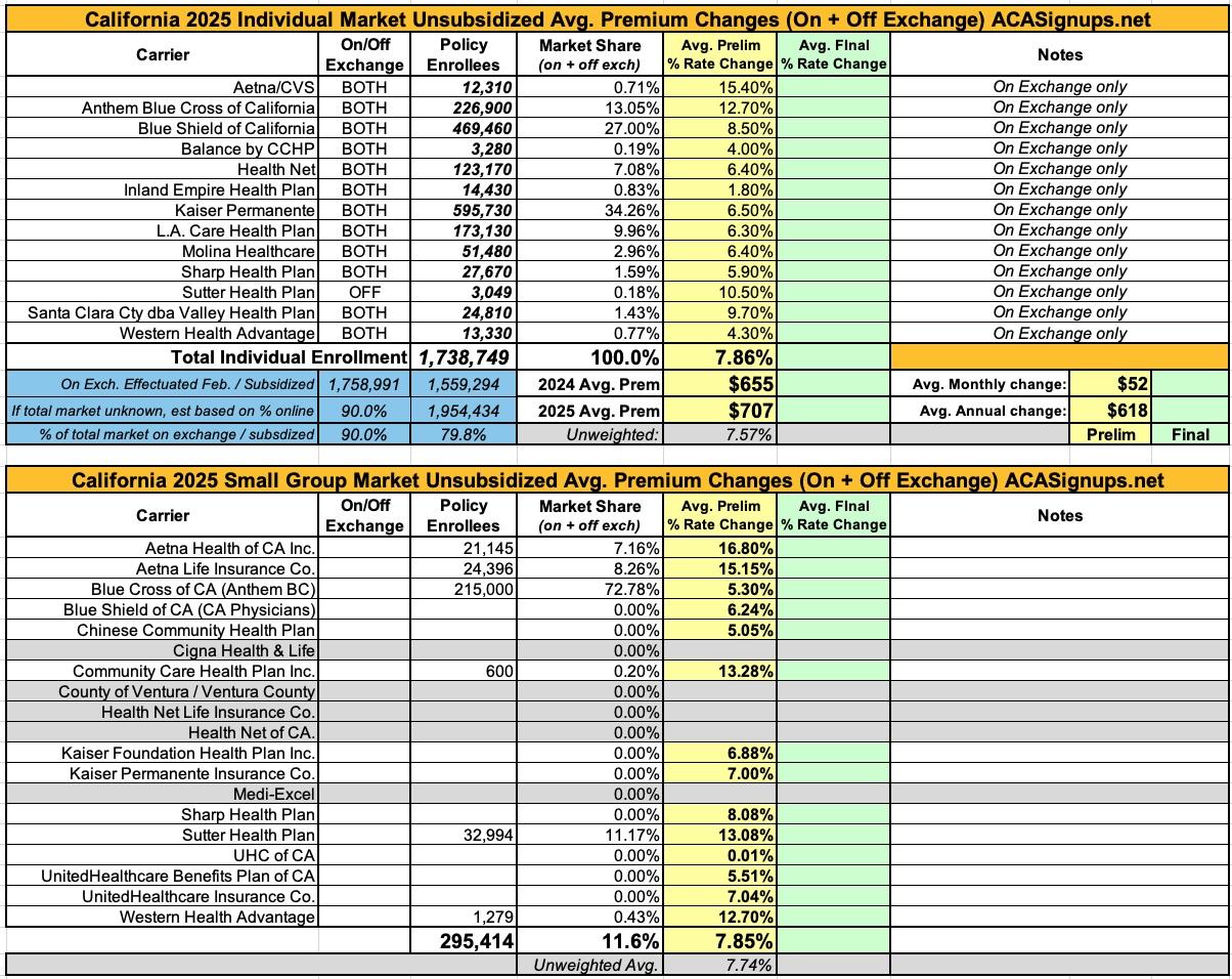 California: Preliminary avg. unsubsidized 2025 #ACA rate changes: +7.9%; 40K DACA recipients to be eligible for #ACA coverage this fall