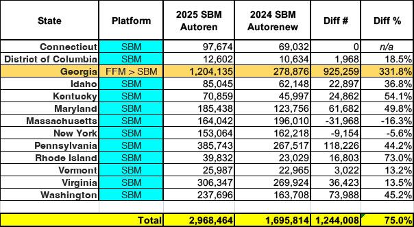 ...HOWEVER, it's important to remember that Georgia is a special case and that the final 2025 auto-renewals will inevitably be smaller than the numbers shown above since many of those liste as being "auto-renewed" have since (or still will) gone into their accounts and either actively re-enrolled or have actively terminated their renewals.