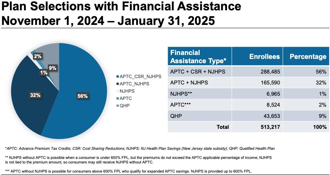 New Jerseyans have been able to take advantage of record levels of State and federal financial help, with the average amount of assistance at $589 per person per month for 2025 coverage, compared to $484 at the end of the first Open Enrollment Period in January 2021.